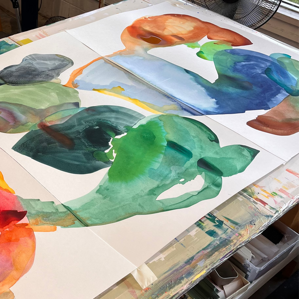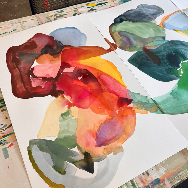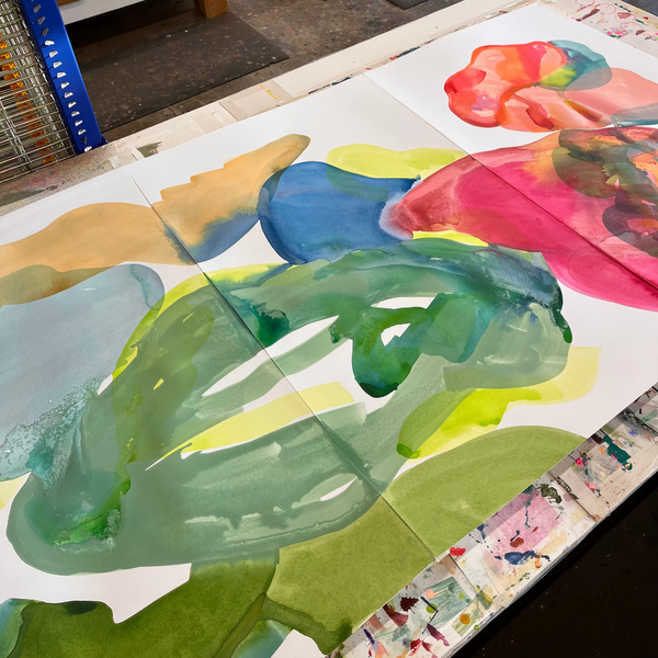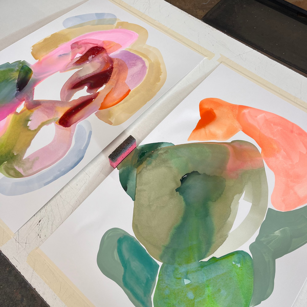 We apply layers of paint to extra thick sheets of paper in a variety of colors.