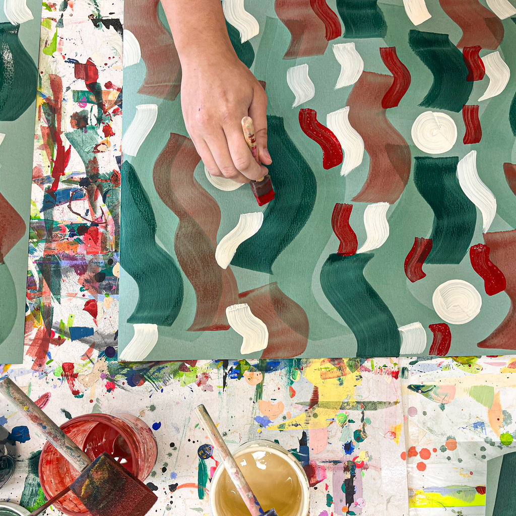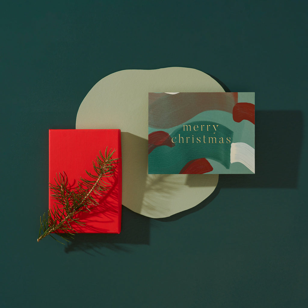 Each card is hand painted on large pieces of card stock before foil stamping on one of our antique foil presses. The result is a completely one of a kind card.