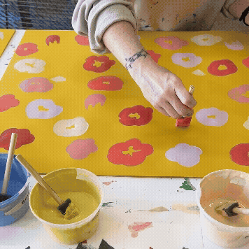 Der Produktionsprozess beginnt mit der Farbe. Mitglieder des Malerteams tragen sorgfältig Farbschichten in verschiedenen Farben und Stilen auf extra dicke Papierbögen auf. Anschließend werden die Farbtafeln in die Druckerei geschickt.